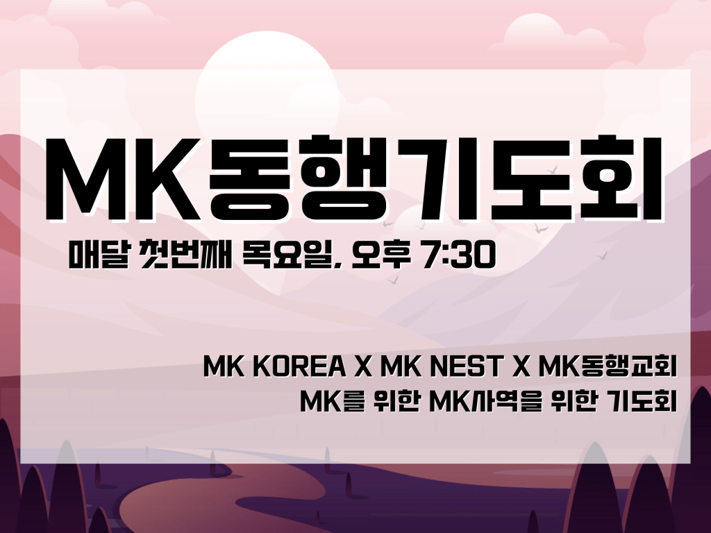MK동행기도회는 MK NEST, MK KOREA, 오렌지호스텔, MK동행교회가 함께하는 기도회입니다.