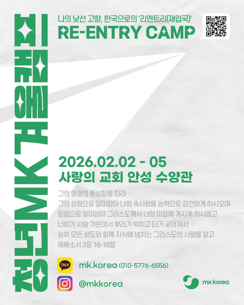 한국 청년MK들의 RE-ENTRY와 IDENTITY를 주제로 캠프가 진행되며, 청년MK들이 한국에서 살아가는 길을 선배 MK들이 서로 도울 수 있는 공동체를 계획하고 있습니다.
