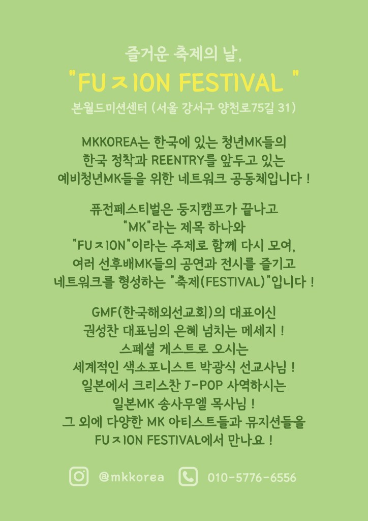 MK를 위한, MK에 의한 축제임은 물론, MK를 사랑하고 응원하는 모든 분들을 위한 자리이기도 합니다!감동적인 공연과 진심 어린 예배, 따뜻한 교제의 시간을 통해 잊지 못할 추억을 만들었습니다. 함께 해주신 모든 분들께 감사드립니다! ✨