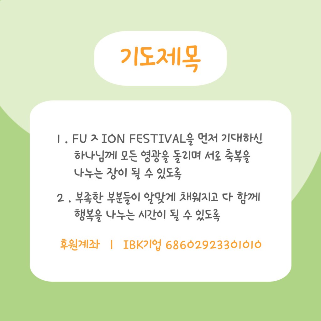 아래 포스트를 클릭하시면, ‘2025 FUㅈION FESTIVAL’ 사역리포트를 보실 수 있습니다.